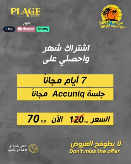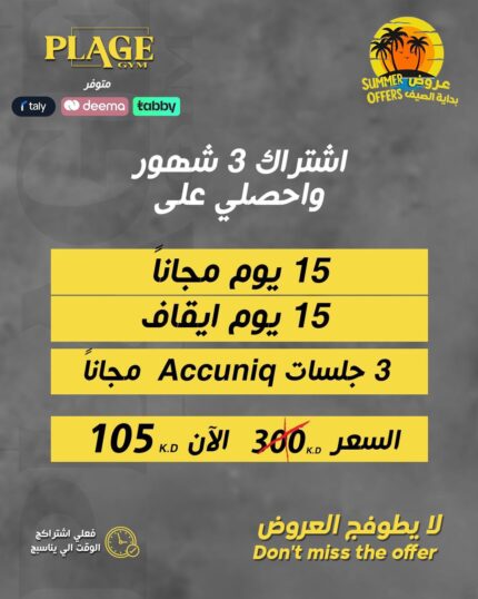 اشتراك 3 شهور + 15 يوم مجانا + 15 يوم ايقاف + 3 جلسات Accuniq مجانا