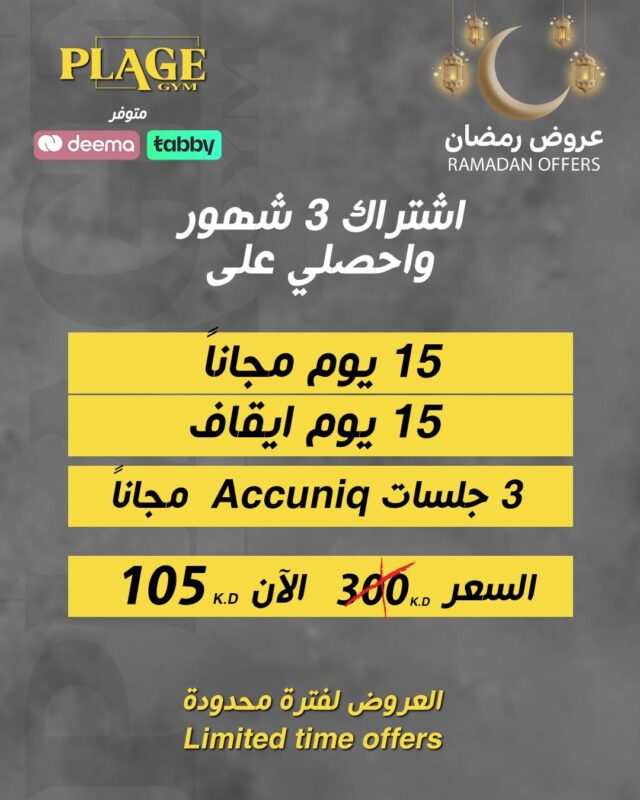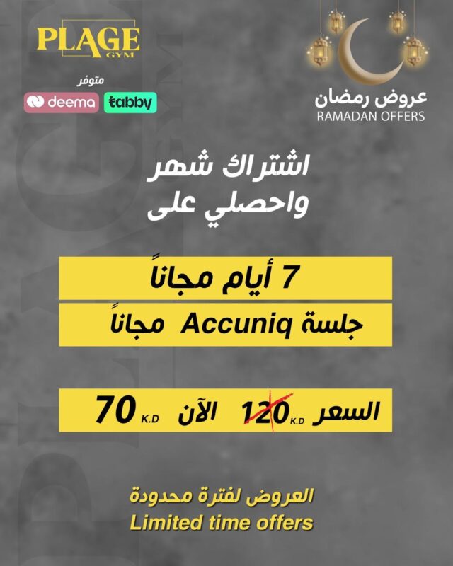اشتراك الشهر + 7 ايام مجانا + 1 جلسة Accuniq مجانا